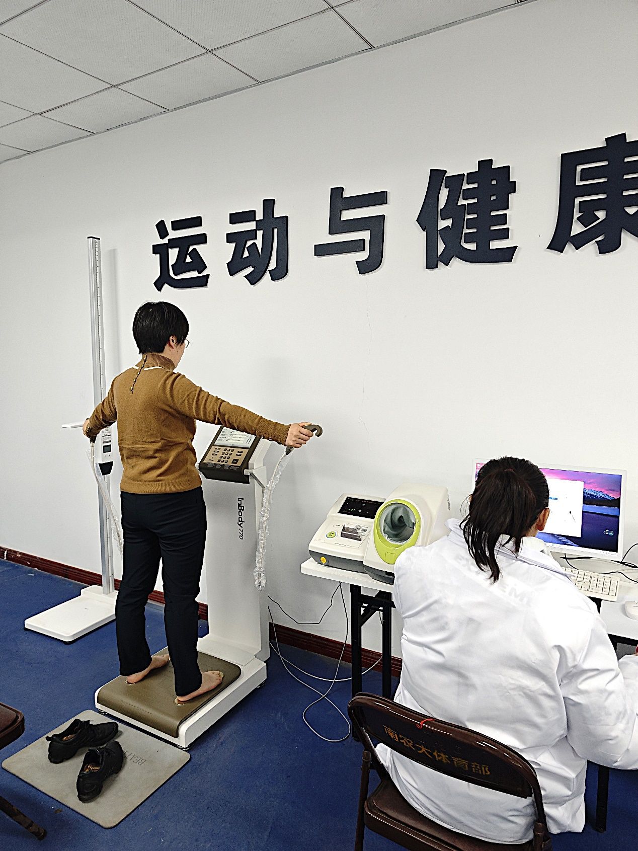 活动现场,由体育部运动与健康科学实验室与校医院组成的专业体医结合团队为每位参检教职工提供了细致、耐心的检测服务,并现场进行报告解读与健康咨询。帮助教职工理解数据背后的健康意义,提供个性化运动与生活建议。