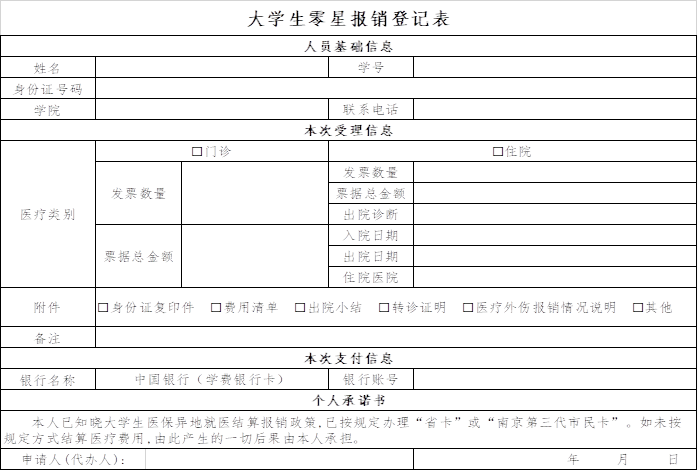 大学生零星报销登记表